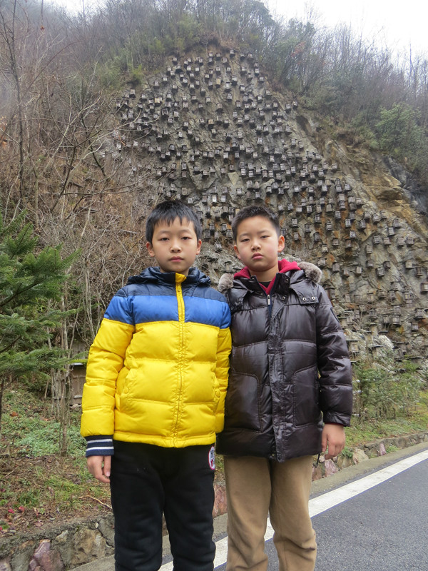 知道背后的崖壁上密密麻麻的是什么吗?蜂箱,神奇吧!