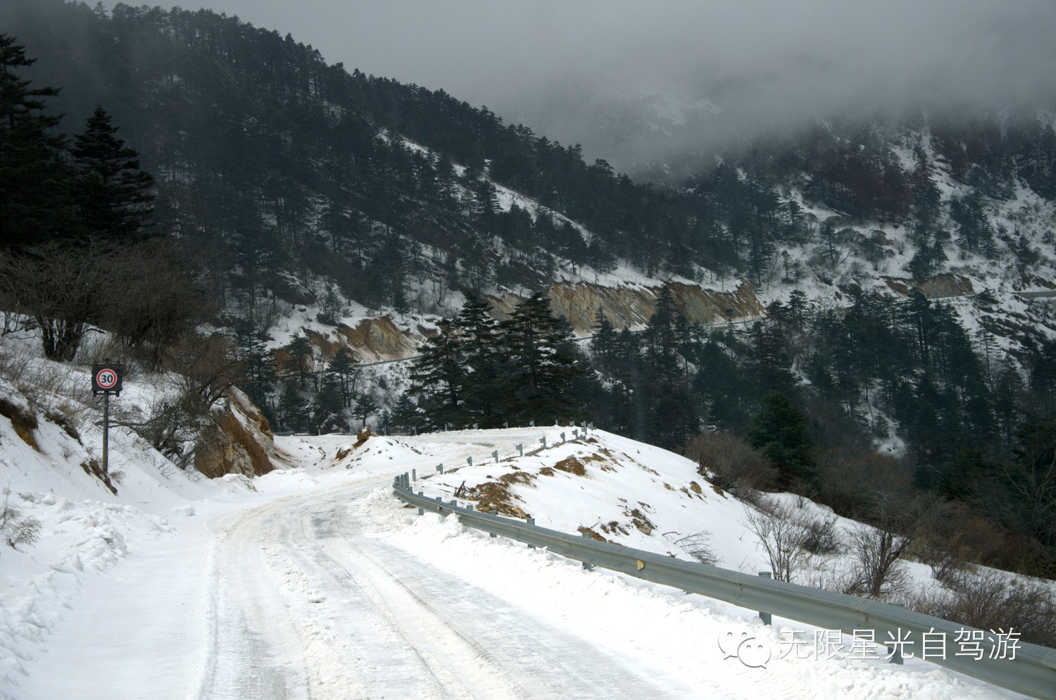 第二天上午的行程是滑雪,车队准时出发,刚走没多久,天空开始飘起纷扬的雪花,海拔越高,雪花越大,天气也变得雾气蒙蒙。路上车辆变多,堵车了。“前方道路路面结冰”的消息传来,让车友们的心里惴惴的。