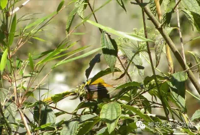 其实在这里也有几只好鸟,河滩的玉米地里冒出个灰不溜丢的?望远镜里细看,居然是蚁䴕!赶紧翻包拿相机......再回首,鸟已不见了。接着下溪水捡石头,前面有块黑石头在水里飘动?嗨,是褐河乌啊!,再去拿相机.......背影也飞走!然后......白冠燕尾也溜走!最后在太阳下晒半小时,只拍到个鬼鬼祟祟的橙翅噪鹛。 下午再接再厉,终于到了神农架景区游客中心(半山酒店边),买票,再掉头进景区,沿途山路好熟悉,只是多了许多观景台停车场。神农源停车场休息一下,看见几只红艳艳的雀儿,回家细判,居然不是酒红是普通(上次也没拍到的酒红,观鸟生涯囧事之一啊! 山路弯弯,走走停停......天蓝云白 凉风垭依旧风凉...... 神农谷果然蛮深...... 只是钻过隧道,大九湖咋变了样?那个傻乎乎的大石头是什么意思? 放几只天鹅大雁的想表明什么? 当晚宿于保护站附近,居然也是有200多栋小楼的大集镇了。沿湖还有无数新起的自行车出租点、农家乐饭店。次日早哆哆嗦嗦的吃早饭,看见大屏幕的告示牌上6:00时 气温6.7℃!难怪早上不想起床,幸亏带了长裤长袖衣服!湖边转去,没有了恍若仙境的感觉,人工修造太明显。曾经的鲫鱼跃跌水的湖道全部硬化成了闸口,连汉江源的水塘都用毛石铺砌一新。 罢了罢了,整个大九湖全部转了一圈,除了大早出门看见一只白腹鹞,金雕栗鸢都没有。还沿路尽是小心毒蛇勿进草丛的告示。鹞飞走后,那些惊起的绿头鸭斑嘴鸭也消失不见。如果不是自己闯进镜头的灰林鵖和白领凤鹛,真怀疑是不是本地鸟也下山了。 还有一个很忽悠的鹀,在群里请教,多数派认为是黄喉雌鸟,嘿嘿,原来长得太个性是难为人啊! 鉴于大九湖让老婆感觉到没什么好玩,于是又在山路上歪歪扭扭回木鱼去,沿途居然还有跟车的,汗,就我这才两天的山路驾驶水平。 小龙潭没什么人,但是有个野生动物救助站,下午5:00了也没人看守。于是开开心心的摘竹笋翻进围栏喂金丝猴和猕猴,老婆一高兴,把买的猕猴桃和枣都分给猴子了。 我只好喂狗熊吃草,后来想起路上偷摘了个老玉米,分给它们,居然蛮受欢迎。只是这熊忒小个子,站立时不足1.5米高,估计体重不到70公斤。 顺便近距离观看不自由的金雕......感觉眼神好憋屈的。 金猴岭很安静,遇见一群中科院(北京)来做植物调查的,然后按他们的介绍去看瀑布......没想到两只普通䴓和一只秃尾巴的白顶溪鸲跟着我们走了一趟,它们不累,我好喘,也没能爬到顶。 天擦黑到木鱼,镇子也扩大了一倍多,吃住依旧让人感觉货低价高......夜里居然听见浇筑混凝土的声音----小城镇房地产的冬天远未到来? 7日,看看套票还有官门山、神农坛、天生桥没去,天燕景区是没法再去了,不能浪费剩下的。于是抓紧时间逐一跑过...... 官门山好大,没车一天走不完的节奏。 终于车不能走的地方(说是前方修路,后来发现是里面在大建馆舍),有很漂亮的标本馆和电子展示厅,展示了神农架林区"曾有"的各种动植物及两爬----很多现在已经没有了。 之后步行,因为沿河步道过去有大鲵繁育点。 看大鲵,发现养殖棚门口还有两个检讨书贴着,是拿树枝去捅大鲵被抓了现行。细看时间,居然有一个是昨天的事!于是,拍照没机会了——随时有人看守在旁,1.2米长30多斤的大家伙,躲在暗室也没法拍。 继续走,还有蛇园和鹿苑。蛇园没什么稀罕品种,反而有人积极推荐蛇酒和蛇汤......没胃口,过!鹿苑也没什么好看,院中草皮啃踏尽净。不过边上小围栏有头毛冠鹿,非常粘人,光喂草怎么对得起?趁管理员吃午饭去的功夫,把他种的白菜扯一把叶子来喂鹿。 沿河步行往返约5公里,褐河乌泛滥,小燕尾成群,还有一个在蛇园边晃悠的紫啸鸫,只是都没拍到好片。 其实我个人觉得在园里最大收获是看清八月炸到底长啥样了。已经熟得开口了,估计再没人摘就归鸟吃了。 有趣的是武当山的八月炸果皮多棕褐色,极少见红色的,而且据说神农架的果实比武当山那边成熟早半个月到一个月。难怪在神农架转两天没看见有人卖。 老婆则满心欢喜的和一只赤腹松鼠在步道休息椅边私聊许久,以至于我追拍完小燕尾还能给它留一个影。