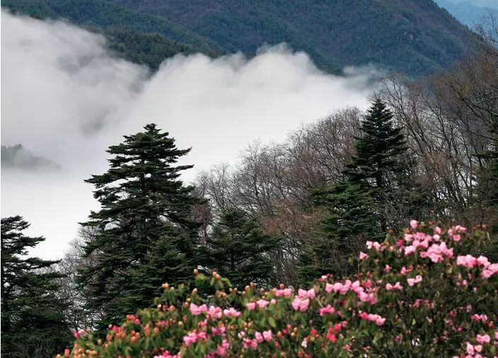 到神农架一定要登神农顶,“山在那里”成了一个盈耳的无法抗拒的招唤。但天公不作美,先是洒了几许甘霖,导游也犹豫起来。反倒是我兴致不减,以为是一道闲笔,说不定这里面藏着惊喜也说不定。一般人到海拔2660米处的神农顶石碑处就是登顶了。而那才是我的起点,半人高的高山草甸“风吹草低”犹如点头哈腰在欢迎我们,草甸很松软,好似踩在一个婴儿最甜美的梦幻中。暗黄色的草甸中杂着一种细细高高的野草,导游说是野葱。另有大片大片的箭竹林,“沉舟侧畔”,有的已经寿终正寝,枯黄中不乏健朗的风骨,而新生的竹苗则以一抹新绿欢喜你的心灵。导游指着一串足迹说有野猪来过。这不免让我心有余悸,但看他自若的神态,我又以为多此一举了。更有了盼有狭路相逢的想法。导游指给我看那些有来头的草药,我怀疑第一个给它们命名的人一定是个心藏乾坤的诗人,因为那些名字如此奇特而瑰丽,比如说江边一碗水,文王一枝笔。 越往上走,箭竹林越密,乱竹重叠,疑似无路。我们分竹前进,感觉中我成了盘古开天第一人。凉意浸透衣衫抚摸着我的肌肤,苏轼说“高处不胜寒。”诚乎斯言!来到一处悬崖边,下临深渊,让人股生战栗。纵目驰骋,雾海茫茫,瞬息万变,不是天界,胜似天界,似乎我只要稍候片刻,从里面就会冒出各路神仙。视域中出现一簇簇一丛丛的杜鹃和冷杉树,盘根错节。渐渐乱石林立,上面覆着青苔,让人无所措足。石缝间生长着不少匍地柏,导游说它一千年也长不到一米高。我半信半疑,以为见到了《西游记》中的长生果。真是世界之大,无奇不有。 终于跌跌撞撞到了峰顶,寒风掀袂,呵气成云。能见度在五米以内,云遮雾绕。我百感交集,个中情感非入此瓮不能体会。我仿佛突然之间明白了那些藏入深山的逸士。 红坪画廊是一幅展开的画卷,昨天的一场秋霖让大地如洗。十月正好,啁啁啾啾的小鸟倏忽来去,草地上点缀着缤纷的小花。一切的一切都透露着生之喜悦。层林未染,需要仔细分辨才能捕捉到季节的留痕。导游告诉我,再过些时日,神农架就更美了。经霜的叶了会从叶尖开始由绿而黄而红,一棵树上,在深绿浅绿的底子上,有鲜艳的橙、明丽的黄、神秘的紫、大块的红,不同的层次杂陈在一起,更有那种类繁多的树木衔接在一起,更丰富了秋天的容颜,纵然是大家的笔墨也难以尽其精髓。我突然想到齐白石的一句话:“学我者生。”我想它更适合于神农架之口。真正的艺术泉源在自然在天籁,它们才是安泰脚下的大地。即使不能欣赏到这一切,迟钝的游客也可以在这儿果果口腹,大快朵颐一番。沿途各类树木硕果累累,神农香蕉、小柿子、苦李子、板栗、猕猴桃,它们大多小巧,有着未驯的生涩酸甜,反倒别是一番尘外滋味。导游嘱咐我每种果实都要留半口给那些饥餐的小动物吃,我突然发觉她也是神农架不可或缺的一个组成部分。 临崖远眺,山峦起伏,峰奇谷秀,山涧含幽,气象万千。怪石累累,曲峰丛丛,树木葱茏,山花遍缀。雾中的神农,如沐仙境,更显伟岸,山雄志远,这一刻,恰似君临天下,心潮澎湃,静观天下沉浮,独领鄂西北风骚,感叹岁月无情,感悟人生短暂。 神农架素有“植物王国”和“天然花海”之誉,又是名副其实的杜鹃花之乡。高山杜鹃无疑是上苍赐予神农架最好的礼物。据调查,神农架共有杜鹃花科植物7属35种,超过湖北省杜鹃花种数的一半以上,杜鹃花科的植株数共达约1.5亿棵。